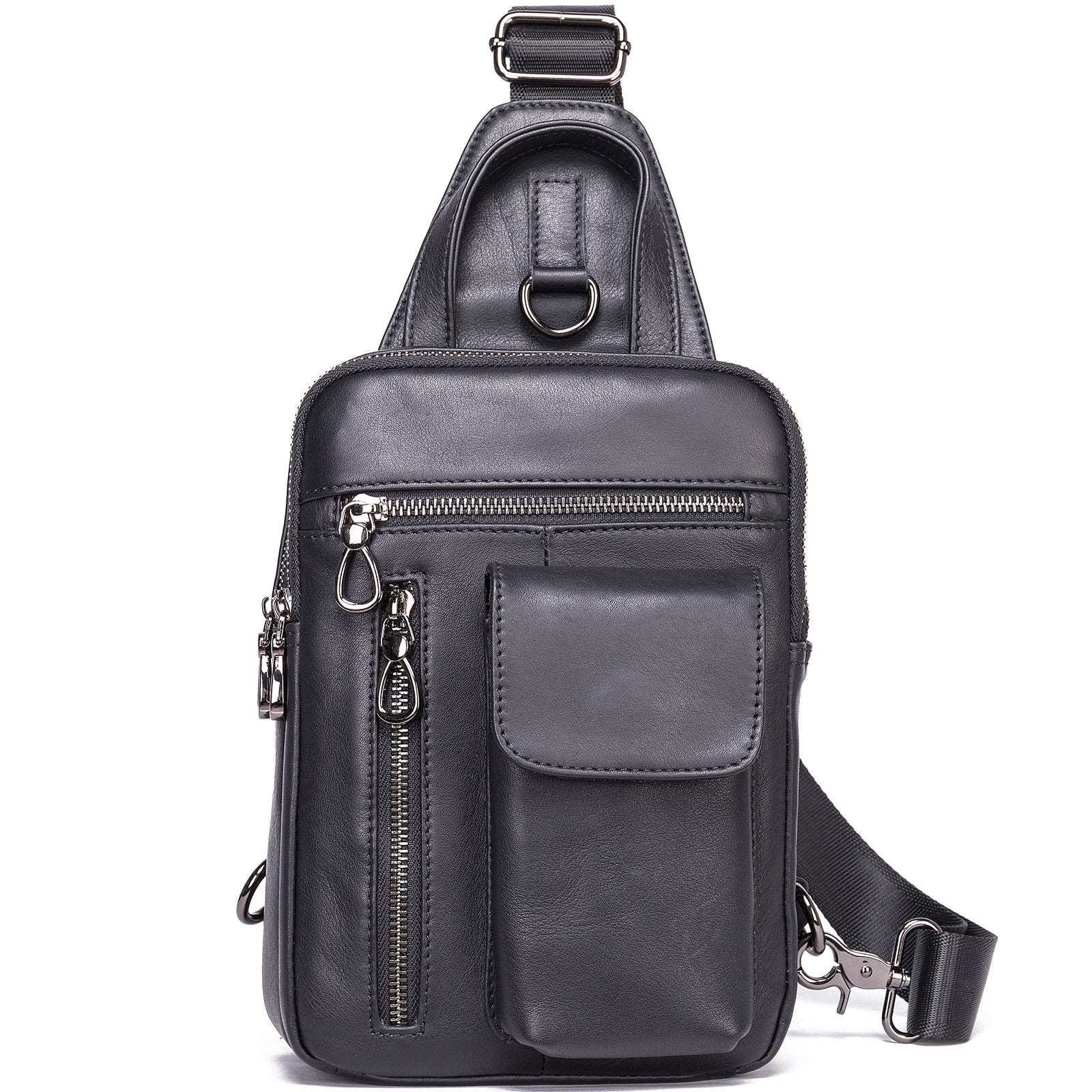 Introducing our Men's Vintage Top Layer Cowhide Leather One-shoulder Crossbody Bag, a unique and stylish addition to any man's wardrobe. Made from genuine leather, this bag is not only durable and wear-resistant, but also exudes a retro charm with its popular elements and vintage design. Available in black, matte brown, and oil coffee, this bag is perfect for daily use and can easily match any outfit.