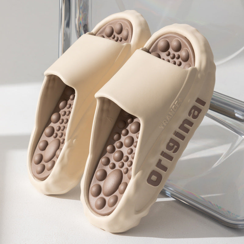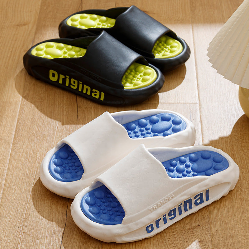 Step into ultimate relaxation with premium EVA slides featuring a cushioned, bubble-textured insole that massages your feet with every step. Lightweight and durable, they provide superior comfort and support, perfect for lounging or post-workout recovery.