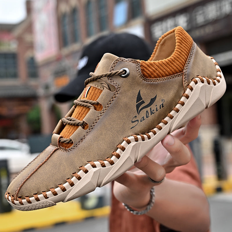 Crafted from genuine leather, these shoes are handmade from the finest materials money can buy. Each pair showcases robust construction and a unique wavy stitched sole that provides both incredible grip and comfort.