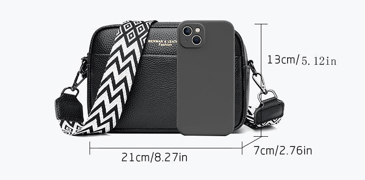This crossbody bag is truly unique with its embroidered wide shoulder strap, making it a stylish and beautiful accessory for any outfit. The bag is made with high-quality materials, ensuring a comfortable wear. With a variety of colors to choose from, you can easily find the perfect one to match your personal style.