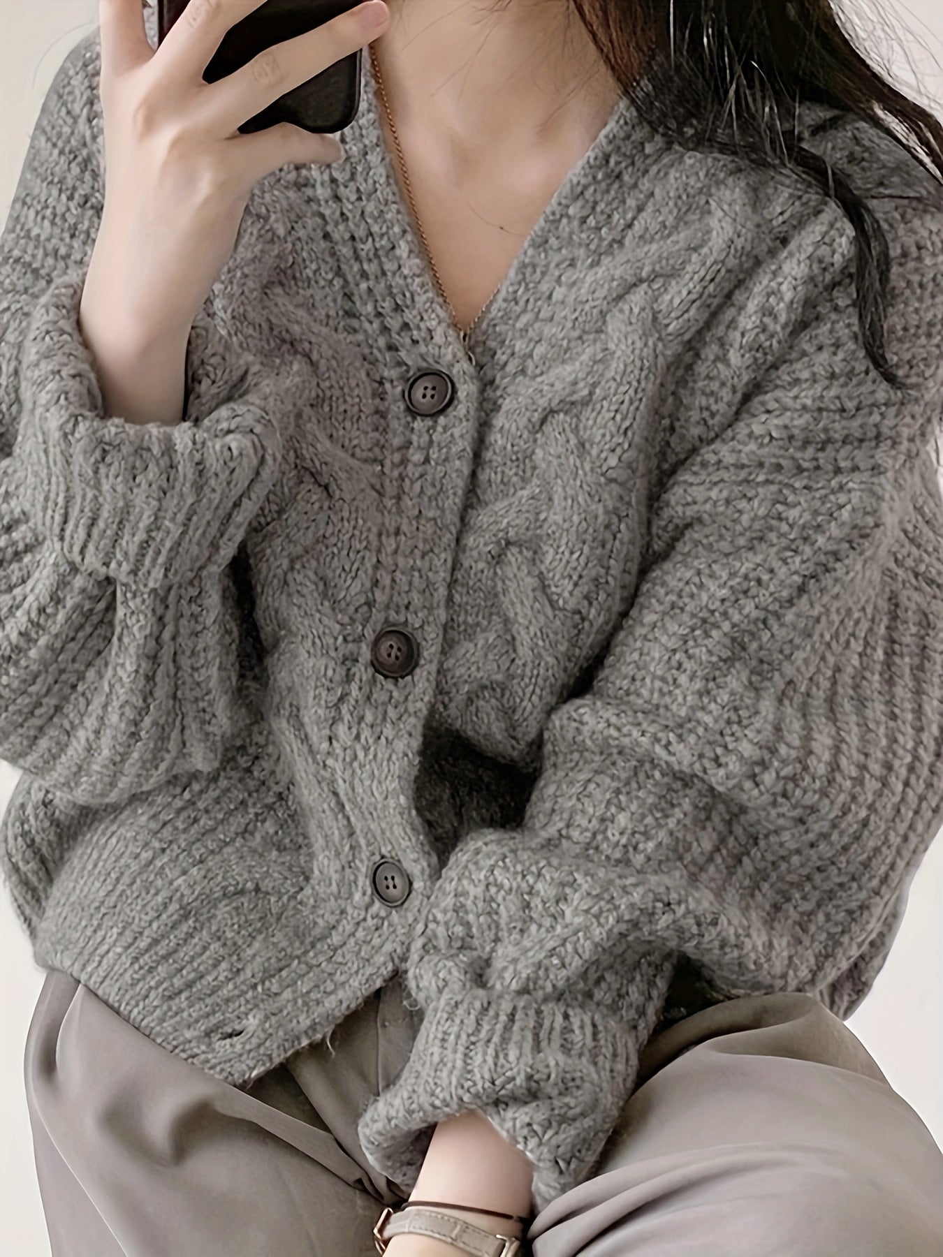Cozy Classics: Vintage-Inspired Long Sleeve Chunky Knit Cardigan