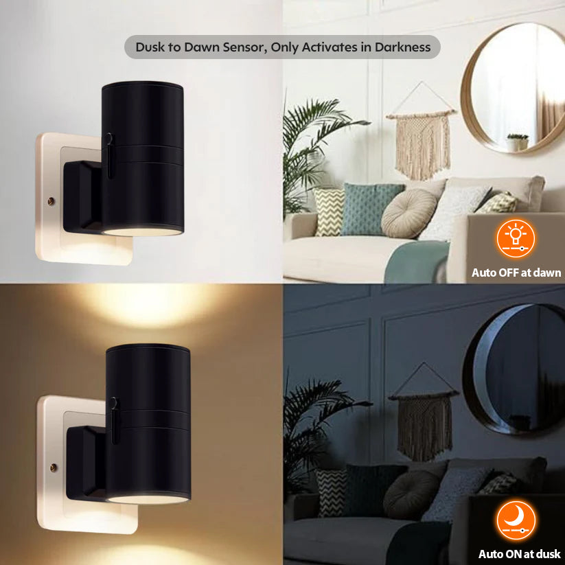 The is a plug-in night light featuring a built-in dusk-to-dawn sensor, which automatically switches the night light off during the day and on at night. Additionally, you have the option to manually adjust its brightness to suit your preferences.