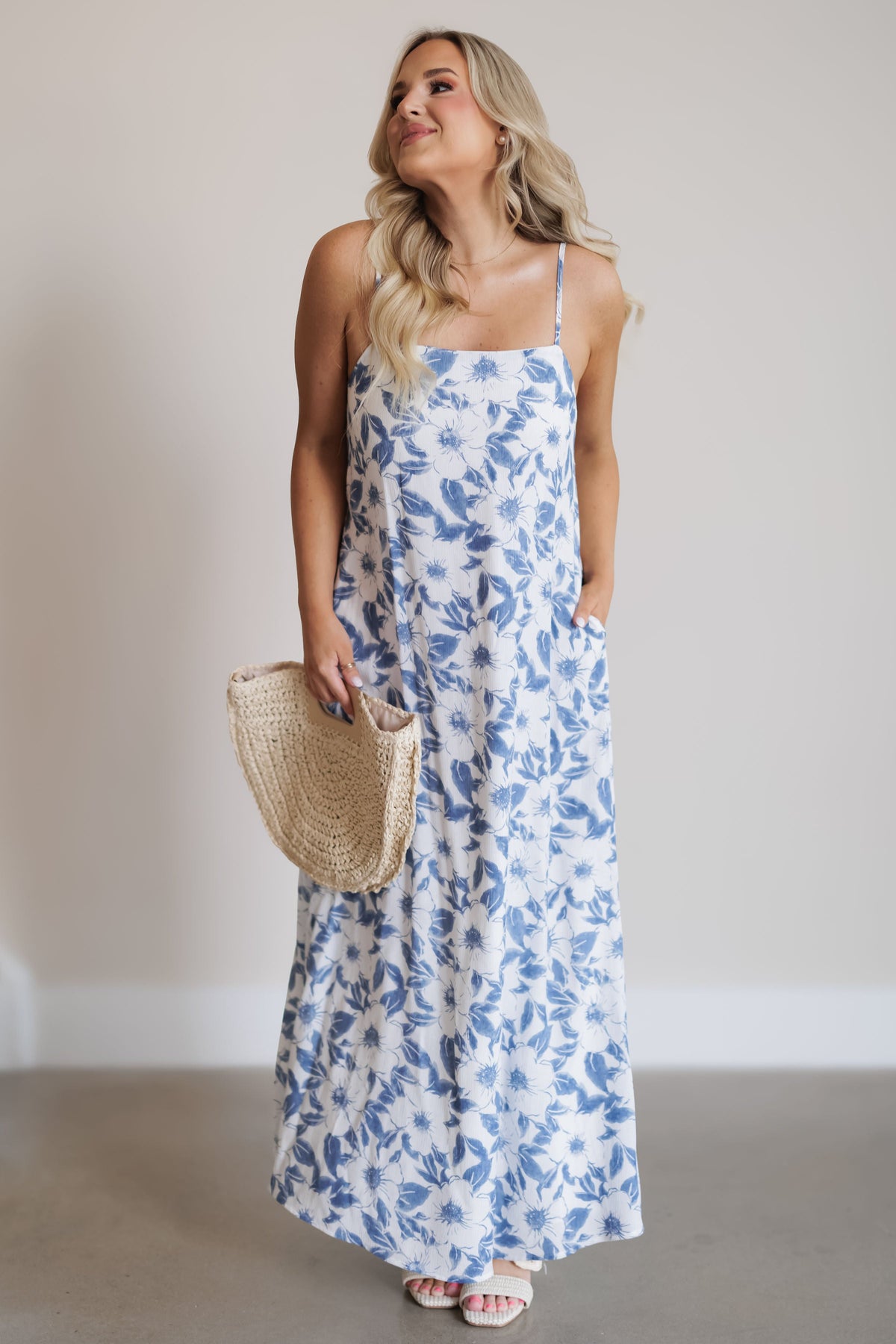 Prepare for spring with the "Jennifer Dress!" We can't get enough of the effortless vacation vibes that this dress has to offer! Complete with adjustable straps, square neckline, and blue floral print, the details on this dress are just so easy to love! It features a relaxed and roomy maxi skirt!