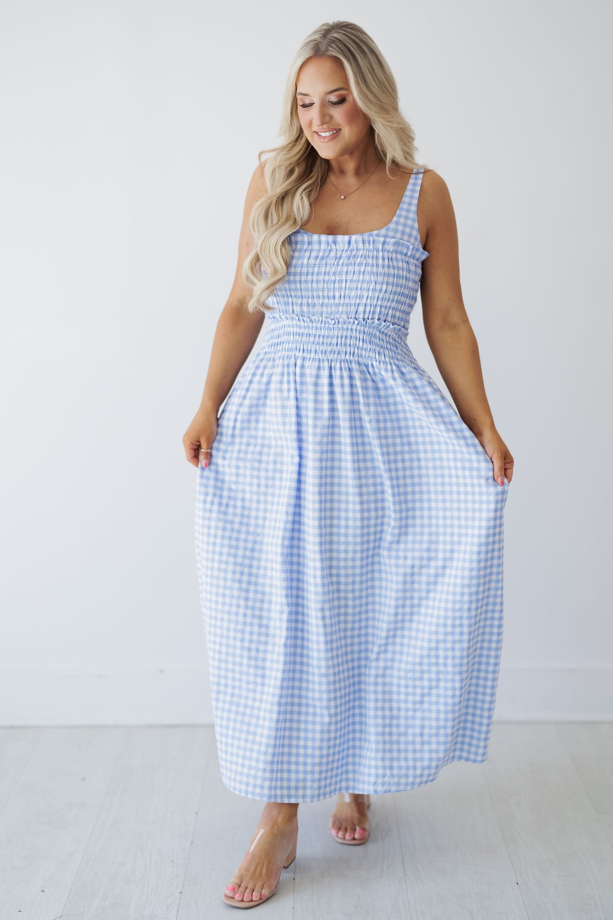 The “Nicole Dress” is the perfect blend of classic and contemporary! Featuring a smocked bodice that hugs your figure with ease and comfort, this dress offers a flattering fit that enhances your silhouette. The flowy skirt drapes beautifully, allowing for effortless movement and a feminine touch. Whether you're heading to a brunch date, a garden party, or a casual outing, this dress adds a pop of color and style to any occasion. With its timeless gingham print and airy design, it’s sure to become a wardrobe favorite for seasons to come!