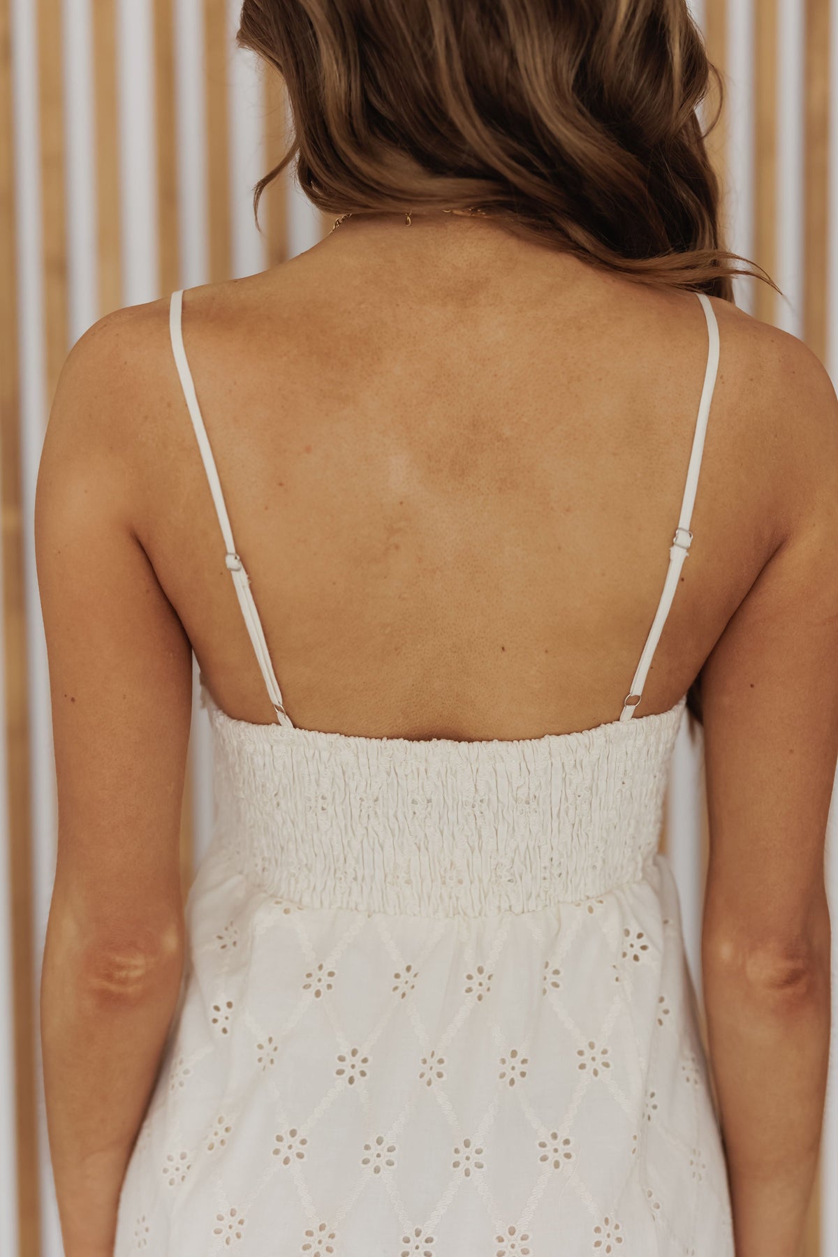 Embrace neutral charm in the "Remington Dress!" This ivory dress is such a feminine and timeless staple to add to your wardrobe! Boasting a button up front, sweetheart neckline, and eyelet details throughout, this dress will have you turning heads! Effortlessly style it up with heels or down with sandals!