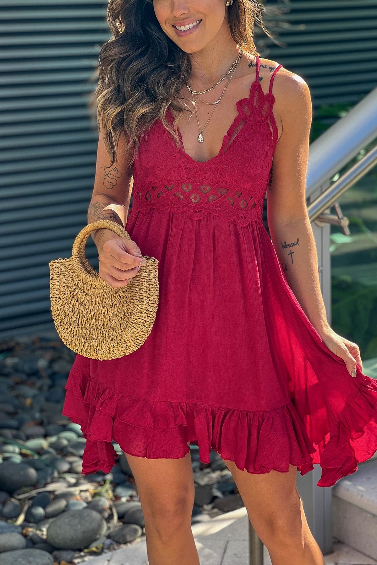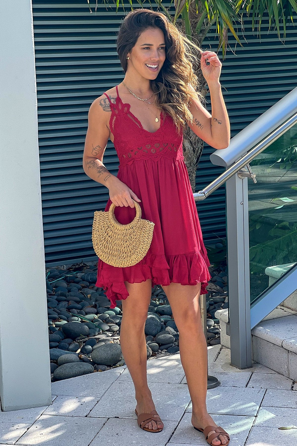 Ruby Crochet Top Short Dress with Criss Cross Back